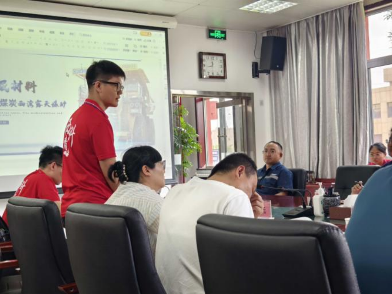 参观结束后,实践团成员与企业领导及校友进行交流座谈会,首先校企双方各自进行简单介绍,随后实践团成员们针对露天煤矿发展中存在哪些生产技术重难点问题展开提问,校友们详细的回答,使实践团成员深入了解了绿色矿山建设中的难题,以及想要解决问题所必须具备的能力。同时,企业领导也针对大学生就业问题所提供的岗位及人员分配提供了解答。